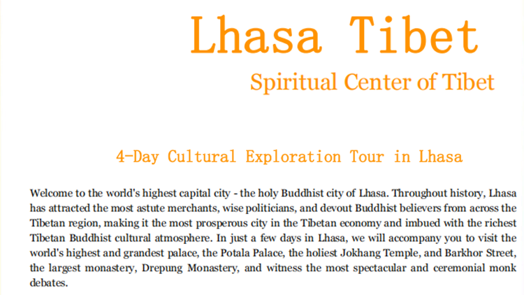 During the Tibet tour, you are required to travel with the group throughout the journey and cannot leave the group activities at will.