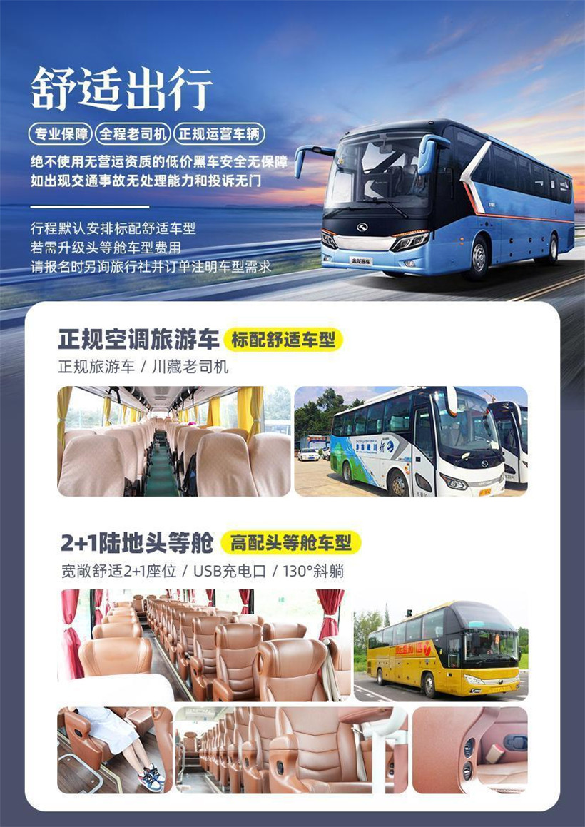 Friendly reminder: Currently, the sightseeing bus in Huanglong Scenic Area (from the upper cable car station to the Five-Color Pool station) is open. There are only 5000 tickets available per day, and the fee is 20 yuan per person, which is a voluntary purchase. Tourists who have the need are recommended to pay attention to the official WeChat account in advance and make reservations and grab tickets in a timely manner. If you fail to get the tickets, the travel agency and the tour guide will not bear any responsibility. Please understand! (The cable car and sightseeing bus in Huanglong may be suspended for maintenance in winter, and you need to walk up and down the mountain. Please act according to your physical strength.)