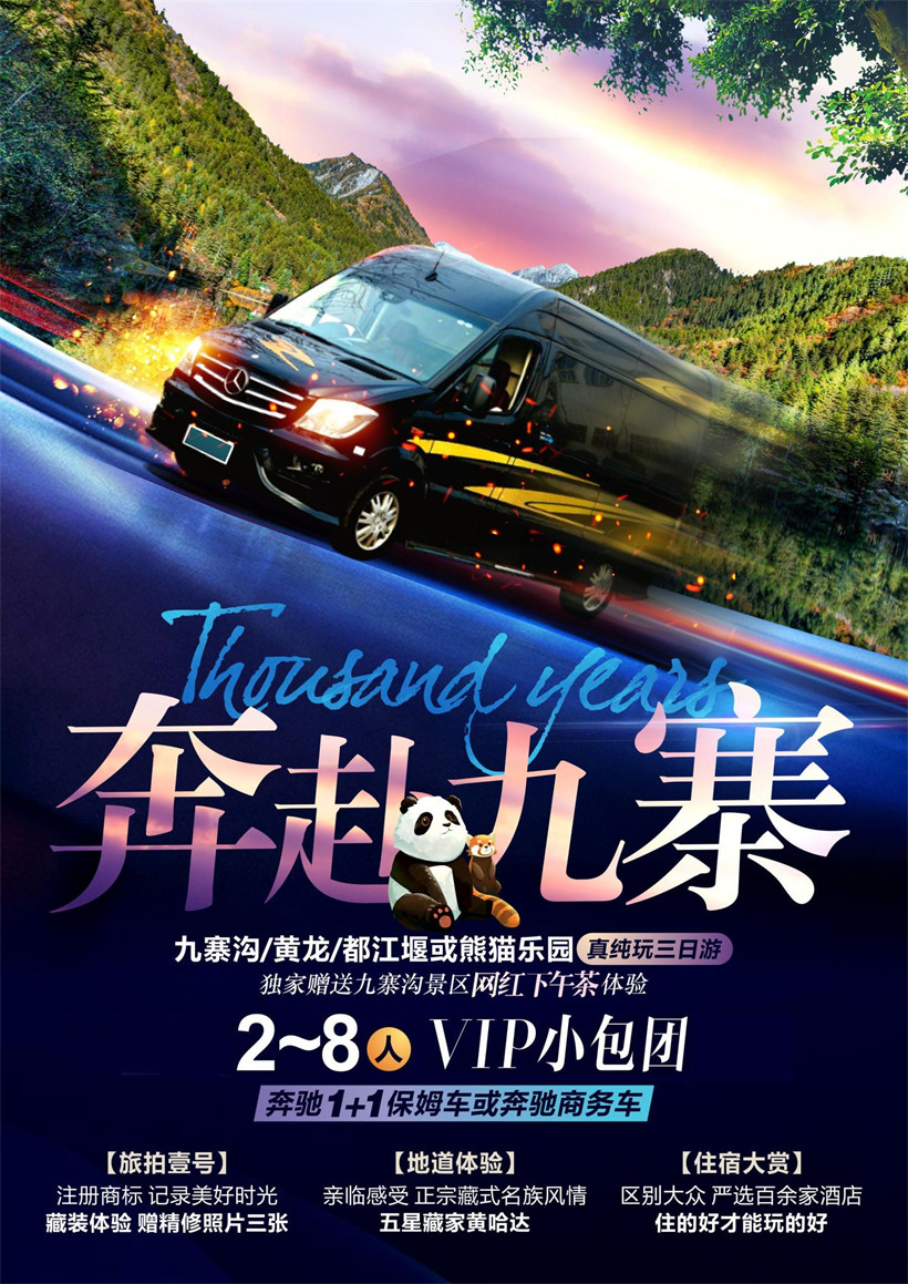 九寨沟+黄龙+都江堰熊猫乐园+松州古城双汽3日游(携程四钻+头等舱车)Jiuzhaigou Valley Scenic and Historic Interest Area + Huanglong + Dujiangyan Irrigation Project Panda Park + Songzhou Ancient City 3-Day Tour (Ctrip Four-Diamond + First-Class Carriage)