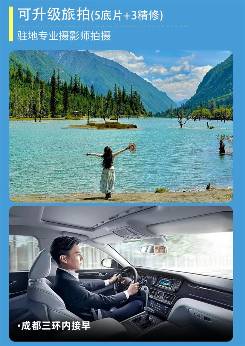 九寨沟+黄龙双动3日游(四钻酒店+头等舱车)3-Day Jiuzhaigou Valley Scenic and Historic Interest Area + Huanglong Dual-Activity Tour (Four-Diamond Hotel + First-Class Carriage)