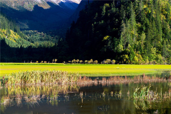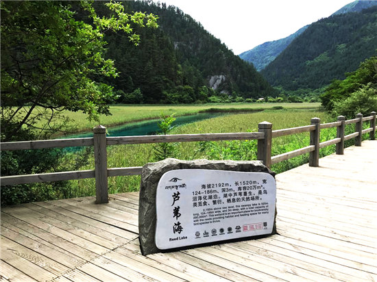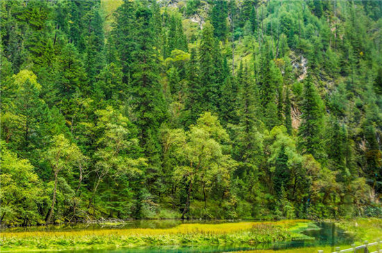 呼吸着新鲜空气,山谷中是悦耳动听的鸟鸣,脚下是潺潺的流水,身边是茂密的森林,走在木质栈道上,心情格外地舒畅。 水面上水草苍苍,远处偶见水禽嬉戏在九寨沟一百多个海子里,不同季节生长不同的植物,而在芳草海里面生长着许许多多色彩斑斓的草类和花朵,各种颜色的花草聚集在草海里形成芳草萋萋的一道特别景色。九寨沟芳草海山高谷深,阳光每天要很晚才能照射到的,因此显得有些神秘,夏秋季节,草众似锦,各色沼泽各水草,星星点点,摇曳多姿,时常有意想不到的效果。