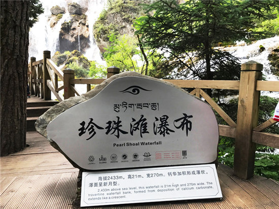 珍珠滩瀑布海拔2445米,瀑布高21米,宽162米,是九寨沟内一个典型的组合景观,是电视剧《西游记》片头中,唐僧师徒牵马涉水的地方。珍珠滩瀑布,如银河天降,气势磅礴,在山谷中发出惊天动地的轰鸣声,气势非凡。宽阔的瀑布冲进谷底,咆哮如雷,卷出千堆浪花,在翠谷中涌起水雾,既而向东狂奔而去,水声雷动,山涧沸腾,气势磅礴。
