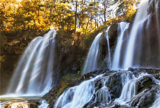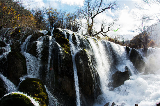 树正瀑布位于四川九寨沟风景名胜区树正沟中,他是入沟见到的第一个瀑布,也是九寨沟四大瀑布中最小的一个。树正瀑布是由首尾相接的众多飞瀑组成,水大势猛,犹如千军万马鼓摇旌,吼声如雷。堤埂上耸立着丛丛高原特有的灌木,扎根于水底,傲立于激流,长年经受流水的冲击而不倒不腐,风姿绰约,形成特殊的植物群落和世间罕见的自然奇观