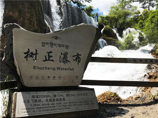水一到裂点就喷扬出来,随着下方凸起的裙状、肺叶状钙华,构成多极浑圆状瀑布。瀑布飞落溪涧,神采飘逸,雄厚的瀑声,旋律刚毅,雪峰银瀑,绿树翠流,构成印象画般的背景,瀑边留影,如诗如梦。上游的湖水沿着浅滩四处漫流,被水中的树丛分成无数股水流,最后汇集到树正瀑布顶端的山崖边,奔流附落,水雾四散,构成了神采飘逸,气度雍容的一片水帘。